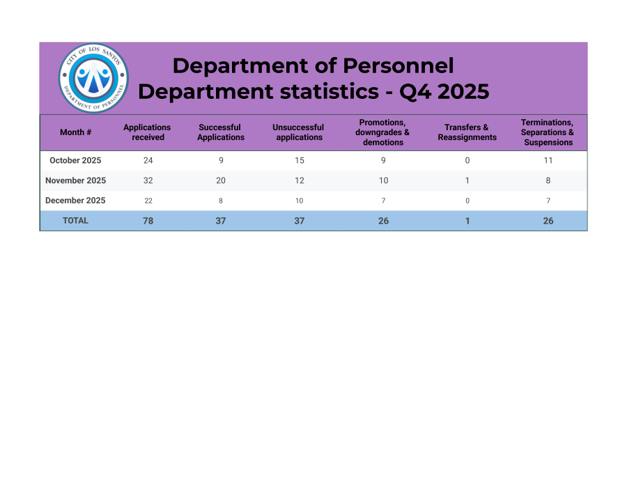 On behalf of City Hall's Department of Personnel. We'd like to wish everyone a merry christmas and a happy new year! 2025 has been a great year with the inception of the Department of Personnel, seeing it develop to where it is today. We also saw the release of GovNet which was a major step forward for us. For those that like metrics. I've included statistics since the release of GovNet.